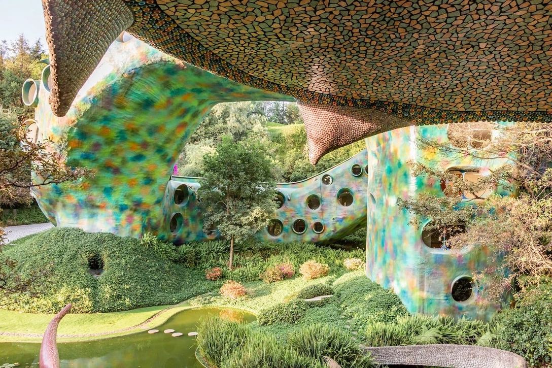 Один из самых необычных домов мира находится в местечке Наукалпан-де-Хуарес в Мексике. Это фантастическое строение в форме гигантского змея было построено Хавьером Сеносиайном (Javier Senosiain), пионером органической архитектуры. Территория общей площадью 200 м2 с домом длиной 50 метров утопает в зелени более 10 000 деревьев, оборудованы искусственные пруды, природные пещеры, водопады, сады и мозаичные стены. Посмотреть, как дом выглядит изнутри, можно в нашем материале.