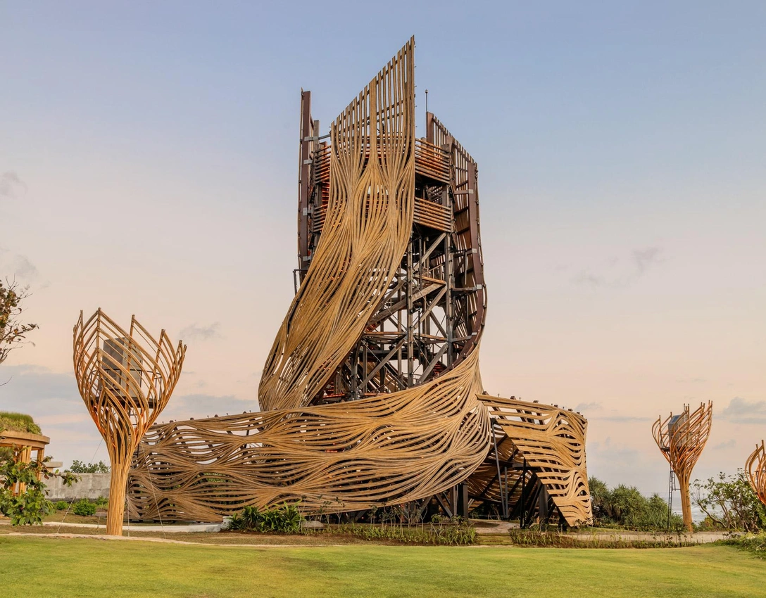 Со временем ротанг может поменять цвет — по словам архитектора, это только украсит конструкцию и сделает ее более живой. «Вся идея в том, что это не статичная инсталляция, а живое, дышащее произведение искусства, где каждая линия и изгиб отражают природу и историю Бали. Это постоянная постройка, но она была спроектирована таким образом, чтобы ее можно было разобрать или изменять так, чтобы не наносить вред окружающей среде».