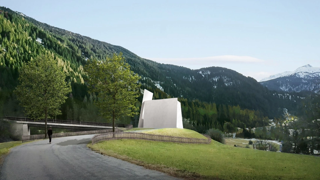 Белые стены, расположенные под углом друг к другу, обозначают вход в подземелье часовни на обочине дороги в Швейцарии. Проект архитекторов Жака Херцога (Jacques Herzog) и Пьера де Мерона (Pierre de Meuron) находится на окраине Андира рядом с автомагистралью A13. После завершения строительства Autobahnkirche станет первой придорожной часовней в стране.