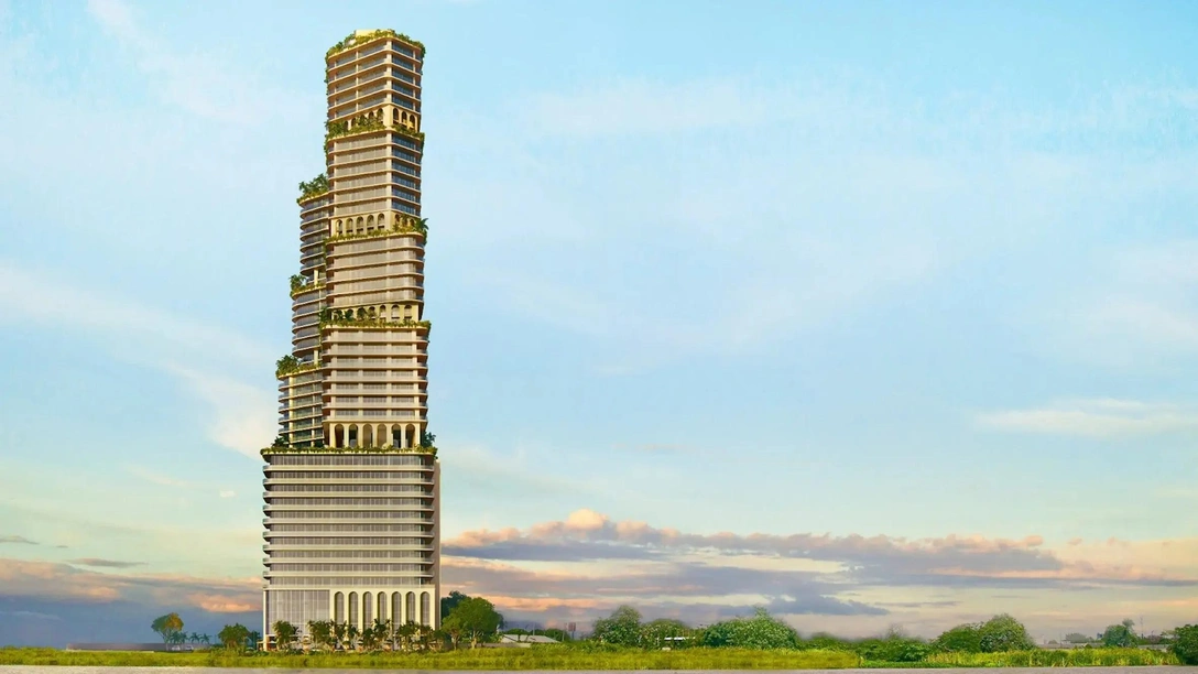 176-метровый небоскреб построят на берегу реки Рио-Гуаяс, протекающей через крупнейший город Эквадора — Гуаякиле. В общей сложности в нем будет 633 квартиры. Они будут располагаться в отдельных блоках, установленных друг на друга по принципу пирамиды. На выступающих участках организованы зеленые террасы, окруженные аркадами. Также в здании будут работать спа-салон, открытые бассейны, пространство для мероприятий и кинотеатр, а на первых этажах дома откроют бутики и магазины.