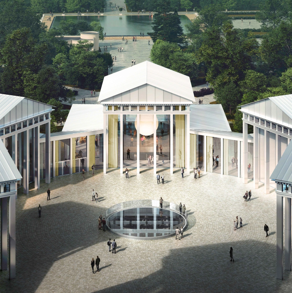 «Когда нам предложили поработать над „Шестигранником“, мы сразу же стали думать, сможем ли мы как-нибудь сохранить его оригинальную планировку и пропорции? И сможем ли создать нечто такое, чем все будут пользоваться? — рассказывают о идее реконструкции руководители бюро Кадзуё Сэдзима и Рюэ Нисидзава. — Музей „Гараж“ всегда внимательно относится и к архитектуре общественных пространств, и к их истории, и это очень близко нам. У „Шестигранника“ есть особое очарование, и в своем проекте мы постарались его сохранить». Проект предполагает сохранение пропорции и высотности павильонов и очищение фасадов от позднейших декоративных элементов с целью восстановить их неоклассический облик. Новый ландшафт, который появится в ходе реконструкции, должен будет подчеркнуть геометрию нового пространства музея и визуально соединить «Шестигранник» с основным зданием музея «Времена года».
