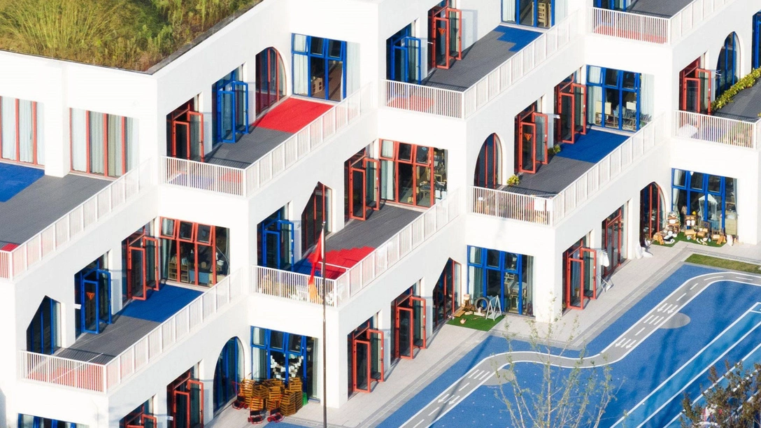 Китайская студия Clou Architects спроектировала в новом районе под Ханчжоу детский сад West Coast, который напоминает ряды поставленных друг на друга белых кубиков. Эту форму со смещенными «объемами» архитекторы выбрали, чтобы у каждой из групп была собственная терраса, и в помещения поступало достаточно естественного света.