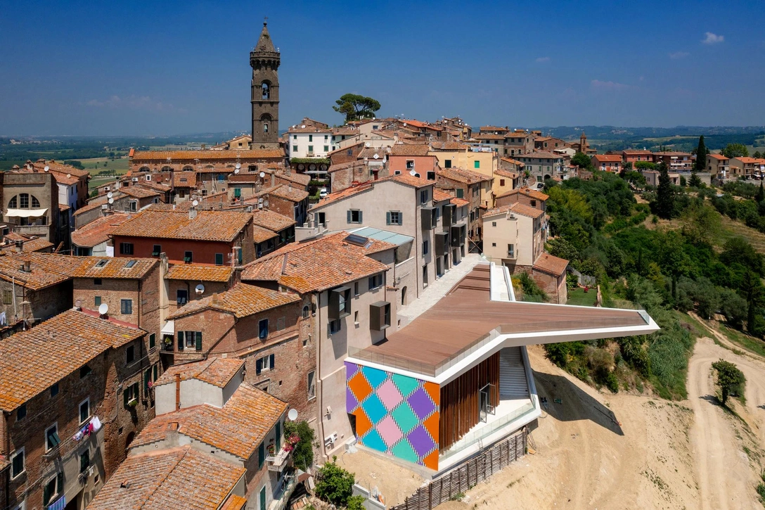 Печчоли — небольшой городок в Италии с населением всего 5 тысяч человек. В последнее время местная администрация активно занимается его развитием, чтобы молодежь не уезжала в большие города, а старикам было, чем заняться на досуге. Здесь открываются новые коммерческие и культурные пространства, восстанавливаются и реконструируются исторические здания. Так недавно в самом центре перестроили ряд домов XIV века и объединили их в комплекс таунхаусов. Оставшуюся площадь, образованную новым укрепленным фундаментом зданий, решили отдать под культурный центр. Для работы над ним пригласили бюро Mario Cucinella Architects.