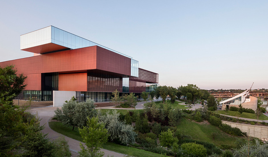 Здание расположилось в живописном месте с видом на изгиб реки Южный Саскачеван. «Где бы вы ни находились внутри здания, вы всегда ощущаете соседство воды» – рассказывает Брюс Кувабара, основатель бюро KPMB. Команда архитекторов намеренно избегала гиперболизированных форм, остановившись на «прото-современном» дизайне.