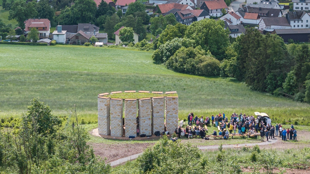 Необычная часовня по проекту Christopher Hesse Architects состоит из двенадцати колонн, сложенных из местного песчаника. Опоры расставлены по периметру, создавая силуэт рыбы — одного из важных христианских символов.