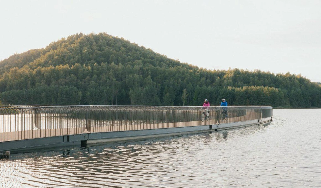 От многолетних работ шахт в Бельгии осталось много прудов на месте карьеров и заросших терриконов, усложняющих передвижение для пешеходов и велосипедистов. Архитекторы из Burolandschap спроектировали между такими «холмами» на одном из прудов плавучий понтонный мост, создав живописный маршрут для прогулок. Мост подстраивается под колебания уровня воды и упрощает передвижение для туристов и местных жителей.