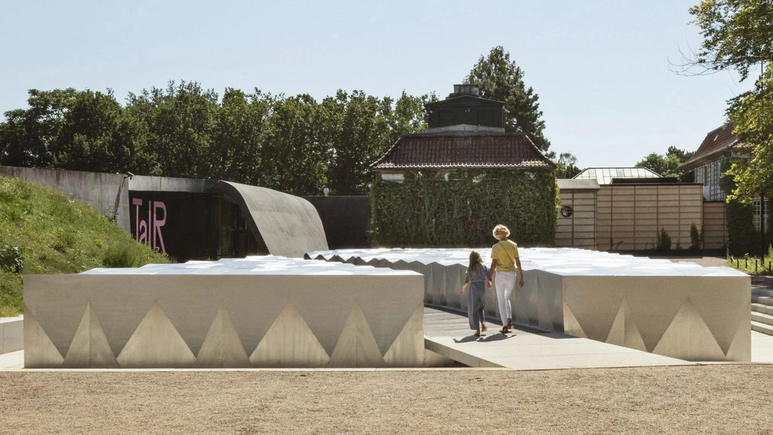 Стальная конструкция, получившая название «Химмельхавен» («Райский сад») архитекторами, по-разному выглядит в разное время суток и разное время года. Она словно вырастает из земли: «Подобно сокровищу, обнаруженному во время раскопок, это сооружение сверкает на фоне окружающего пейзажа», — говорят авторы проекта.