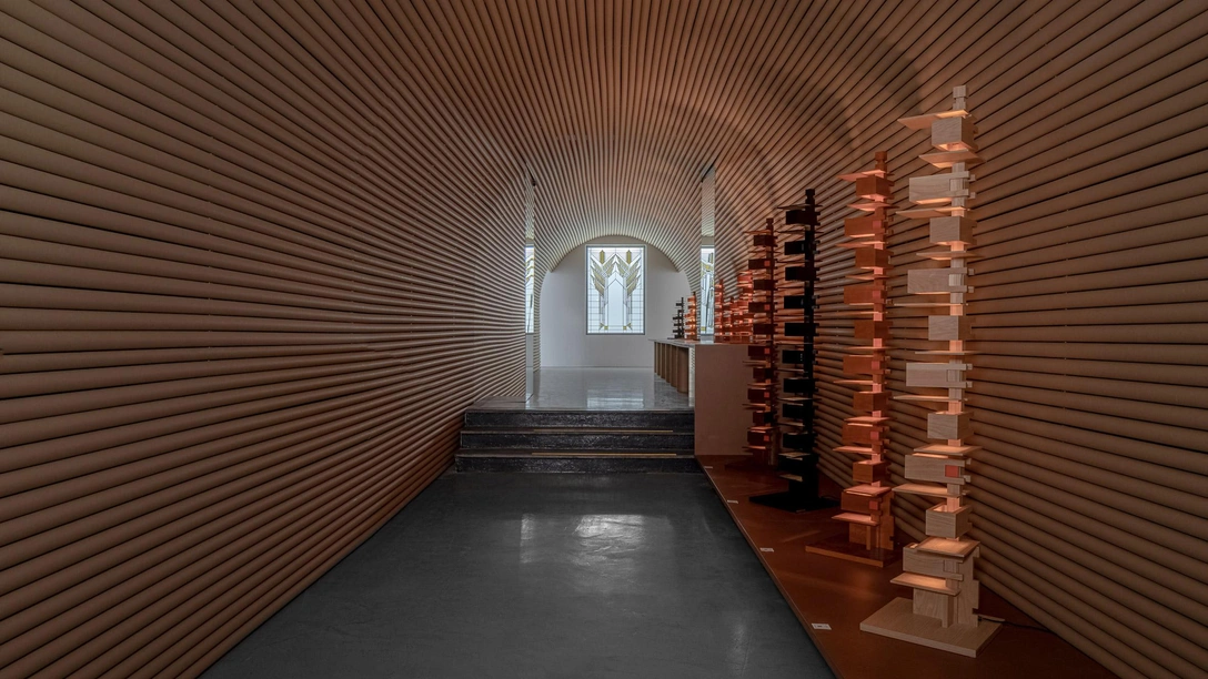 Туннель из картонных трубок в данном проекте — это не только «визитная карточка» архитектуры Шигеру Бана, но еще и оммаж творчеству Ллойда Райта и коридору из стеклянных трубок, который тот в свое времяспроектировал для офисов Johnson Wax. Кроме того, такое решение экологично и соответствует принципам устойчивого развития, которые исповедует японский архитектор. После окончания Миланской недели дизайна и закрытия выставки трубки легко будет демонтировать и переработать: «Нам нужно было срочно оформить помещение, и я не хотел тратить много материала. Эту систему установили очень быстро, ее просто монтировать без всяких винтов и саморезов и также легко будет снять».