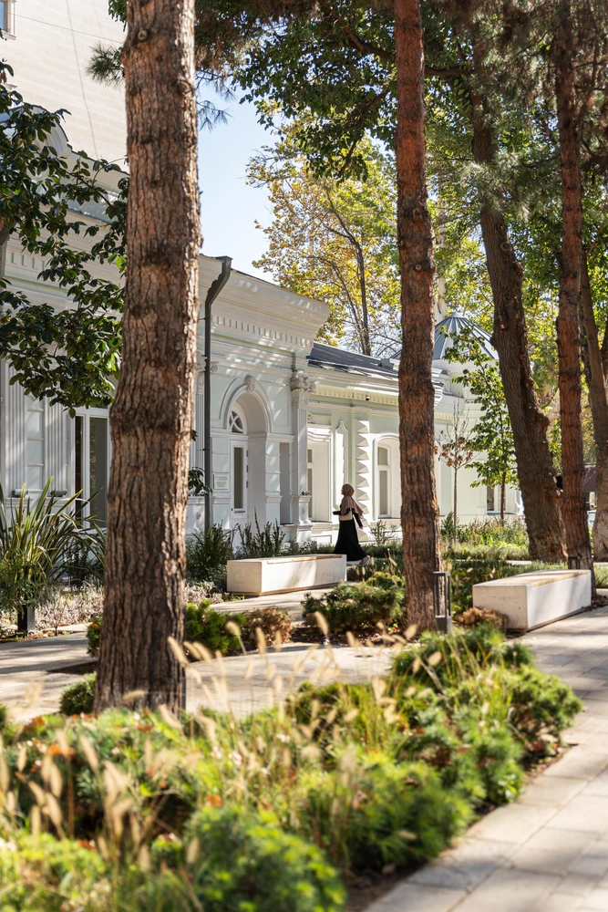 Обновленный культурный центр создан по принципам инклюзивности и с заботой о разных посетителях. Архитекторы создали безбарьерную среду, проработали тактильную навигацию и разработали уютные кабинки для прослушивания аудиокниг. В здании предусмотрено место и для мам с малышами: в Узбекистане традиционно большие семьи, и вместе с читающими школьниками здесь часто оказываются дети помладше.