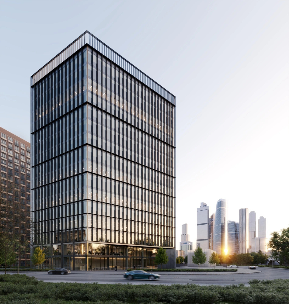 Новый бизнес-комплекс займет территорию вдоль набережной Западного порта недалеко от делового квартала «Москва-Сити». Центральный образ, заложенный в архитектуру башни авторами проекта бюро Wall, — метеорит: яркий, динамичный, стремительный и ослепительный. Этот образ считывается и в пропорциях здания, и в его палитре и материалах: отделка фасадов и внутренних пространств будет выполнена в монохромной графитово-черной палитре, материалы — с ярко выраженной фактурой, напоминающие шероховатую поверхность астероидов. А детали интерьера вроде стойки ресепшн и мебели в лобби будут выполнены из цельного камня.
