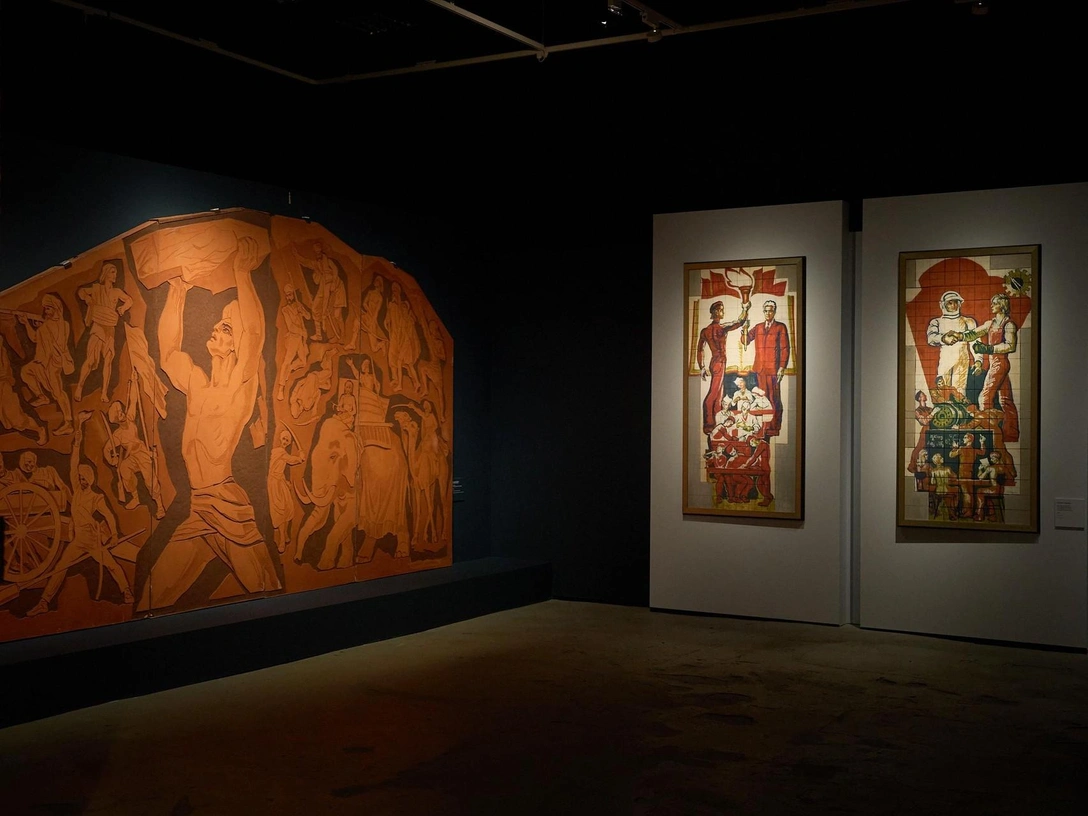Мемориальная доска «Павшим в борьбе за мир и братство народов», созданная Сергеем Коненковым к первой годовщине революции в 1918 году, — одна из самых значимых монументальных работ раннего советского искусства. В течение 30 лет барельеф находился на стене Сенатской башни Московского Кремля, но с началом ее реставрации был снят «за ветхостью». Сейчас мемориальная доска хранится в Русском музее. На выставке воссоздана часть стены вместе с панно и восходящим солнцем (по документальным фотографиям 1918 года).