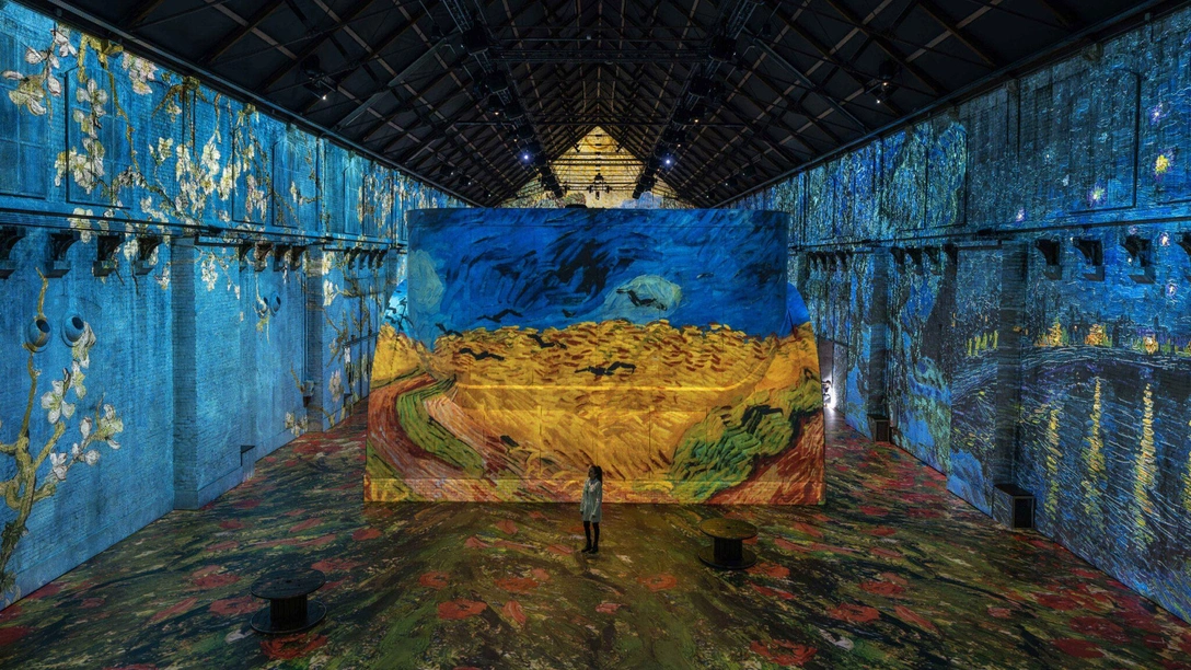 Творческая студия D/Dock переделала зал бывшего газового завода в Амстердаме в пространство Fabrique des Lumières, объявленное крупнейшим центром иммерсивного искусства в Нидерландах. Команда дизайнеров и строителей превратила помещение двойной высоты (площадью 3800 квадратных метров) в выставочное пространство, где красочные произведения искусства проецируются на пол и стены.
