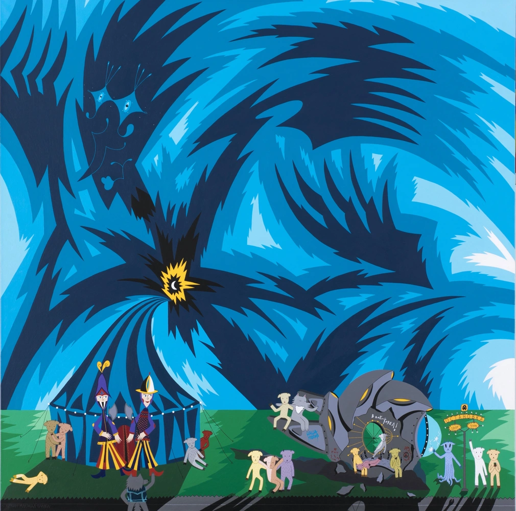 Все эти простые, рутинные действия происходят в психоделическом измерении, где обитают самые разные формы жизни: чайник водит хоровод с кружками, закупаются «Шатры Угара», козочки в рубашечках ходят петь в хор, а художественная мануфактура «Глазной Зной» выпускает студентов-растений, животных, роботов и иногда людей. Природа же тем временем совершает свой цикл, меняя одежды под ласковым взглядом вечного солнца.