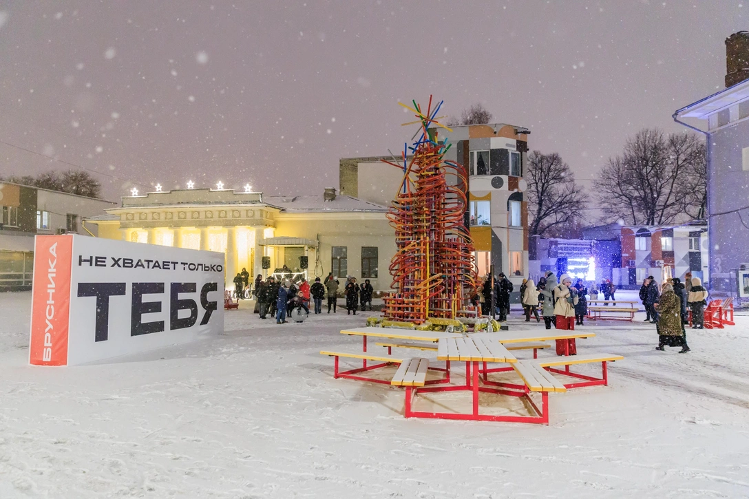 «Брусника» и «Бюро Никола-Ленивец» превратили двор Музея Москвы в настоящую зимнюю зону отдыха на открытом воздухе — с креслами, уличными обогревателями и фотозоной. В центре этого пространства возвышается «Электрическая елка» — шестиметровая новогодняя инсталляция по дизайну художника и основателя лэнд-арк парка Никола-Ленивец Николая Полисского.