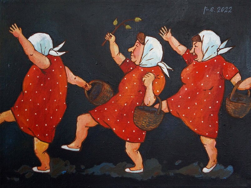 Обитательницы этого причудливого места резко контрастируют с окружающим их пространством: зрителя встречают героини-«бабули», в цветастых платочках, платьях в горошек, на первый взгляд, простодушные и наивные, но каждая со своим особым характером и жизненным багажом.