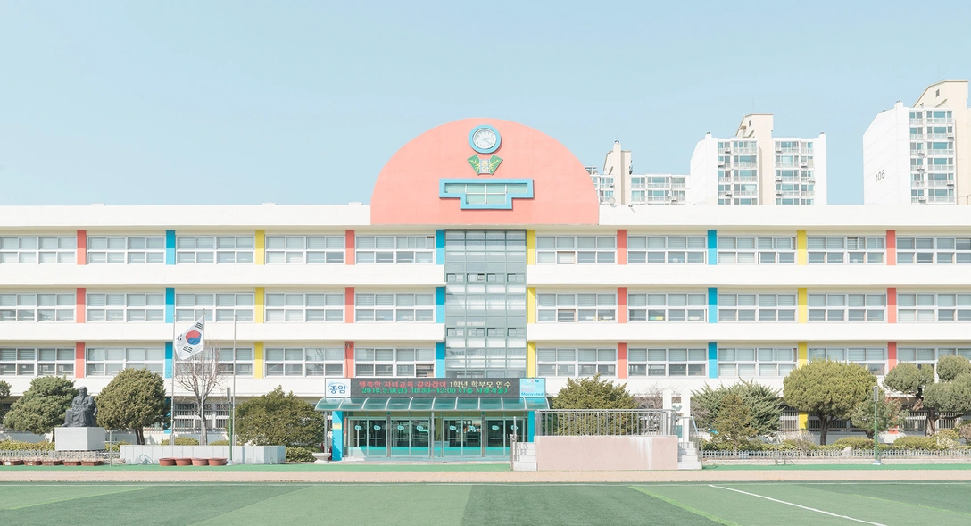 Одним из самых обсуждаемых проектов Албаджара стала серия фотографий на тему корейских школ. Художника заворожила пастельная гамма, архитектурная симметрия и планировка учебных учреждений Сеула. Создается впечатление, что здания, футбольные поля и игровые площадки замерли в ожидании: вот-вот раздастся оглушительный звонок на перемену и толпы детей хлынут на волю из школы.