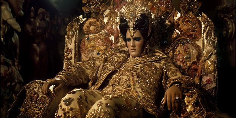 «Скучали? Я вернулся!», — как бы говорит нам Король рок-н-ролла, томно возлежащий на своем троне на этих кадрах из видеоинсталляции King Size Марко Брамбиллы (Marco Brambilla). И название не обманывает зрителя: это действительно одна из самых масштабных видеоработ лондонского художника и кинорежиссера, которую он создал на основе новейших технологий и с использованием искусственного интеллекта для открытия концертного комплекса Sphere и шоу группы U2 в Лас-Вегасе. Проект будет демонстрироваться с 29 сентября до 16 декабря 2023 года во время концертов группы на гигантском экране площадью 15 тыс. кв. метров и обзором в 180-градусов.