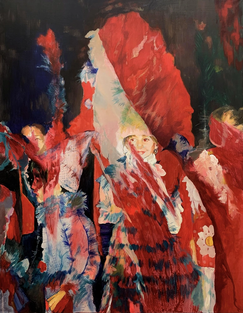 В основе работ Даши Калугиной лежит семейный архив, ее работы похожи на давние, полустертые воспоминания. Создавая их, Калугина использует метод двойной экспозиции, который позволяет усложнять сюжеты, делать их более глубокими и многогранными. Соединяя разные события, внедряя ассоциации, усиливая тот или иной цвет и смешивая текстуры, Даша не стремится воссоздать запечатленное событие, но сконструировать «то самое» воспоминание — впечатление, которое способно сбить с ног, одновременно притягивать и отталкивать.