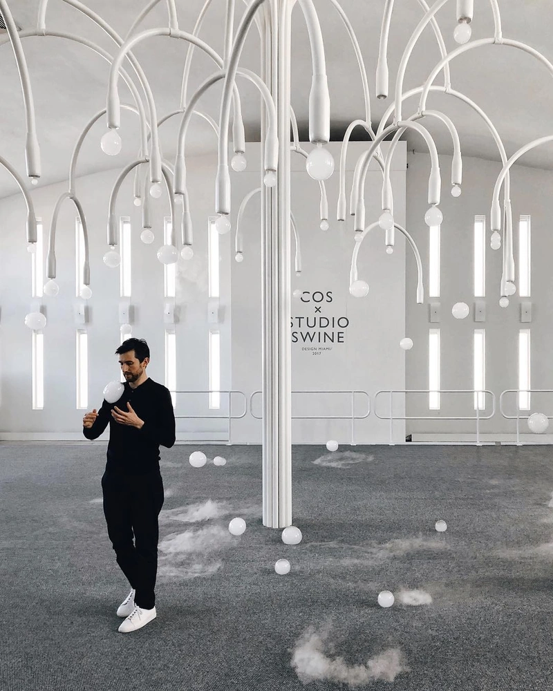 Инсталляция New Spring модного бренда COS совместно со студией Swine снова удивляет зрителей, на этот раз в Майами. Впервые аналогичная установка была показана в начале этого года в Милане, наделав много шума. Мыльные пузыри, наполненные белым туманом плавно опускаются из скульптурного белого дерева, чтобы лопнуть и рассыпаться у его подножия.