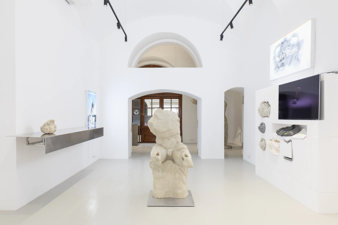 В галерее представлено восемь скульптур, каждая из которых оказывается полноценным спортивным снарядом. Вместе с тем, проект Bulky Biceps Trying To Fly — это еще и видеоигра, и журнал с особым визуальным кодом. Многочастность и многосоставность проекта — важный аспект для художника, предполагающий еще множество вариантов его развития.
