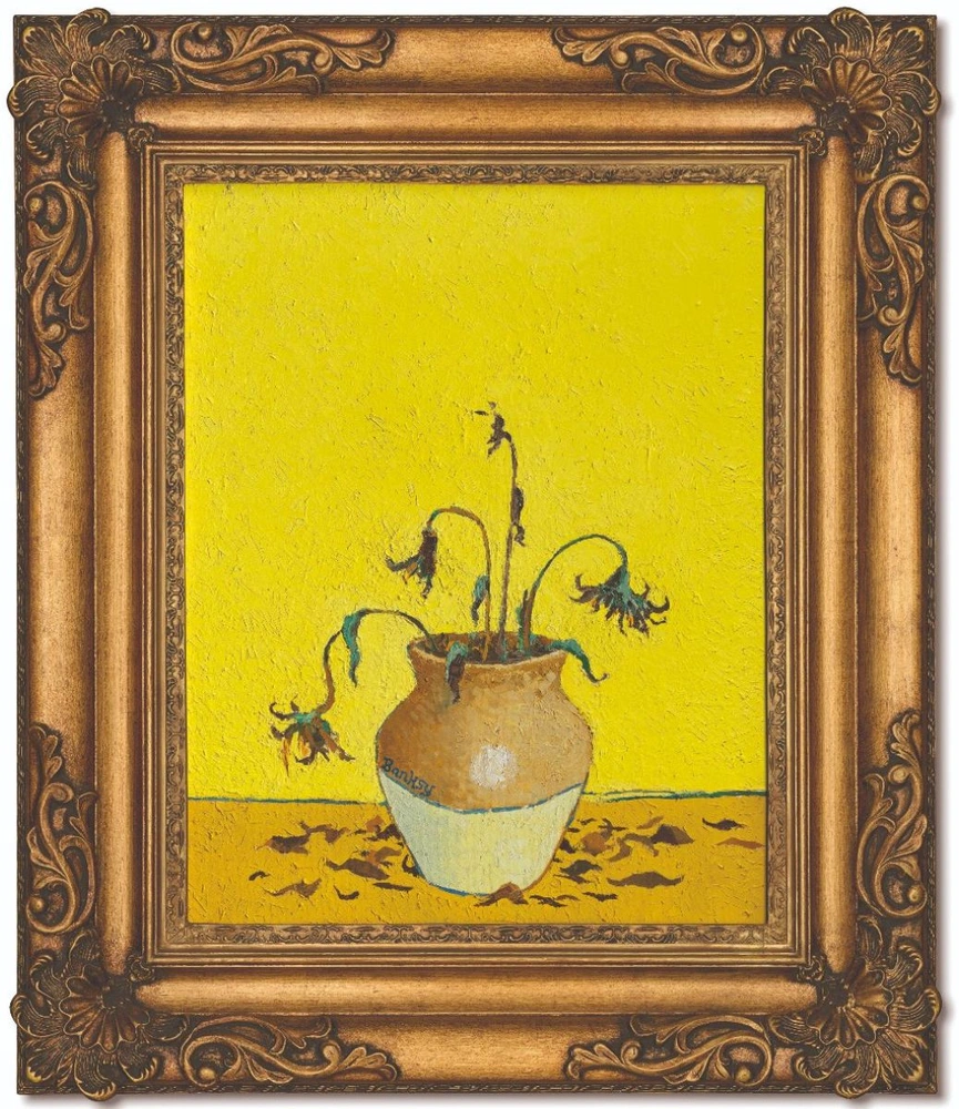 «Подсолнухи с бензоколонки» относится к лимитированной серии картин Бэнкси и является переосмыслением знаменитого шедевра Винсента Ван Гога «Подсолнухи». Художник поднимает актуальную проблему загрязнения окружающей среды и негативного влияния крупных промышленных предприятий на природу. «После рекордной продажи другой картины Бэнкси в марте этого года (Game Changer, 2020) мы рады предложить вниманию коллекционеров „Подсолнухи с заправки“ в ноябре, — говорит Кэтрин Арнольд, глава европейского департамента послевоенного и современного искусства Christie’s. — Эта принадлежавшая легендарному британскому дизайнеру работа является знаковой для творчества Бэнкси, свидетельствуя не только о его высоких способностях как живописца, но и о его неизменной иронии, которую он привносит в обсуждение важных тем. Образ увядших цветов, купленных на заправочной станции, становится поводом для обсуждения отношений между искусством и окружающей средой. Бэнкси напоминает нам о преходящем характере и того, и другого».