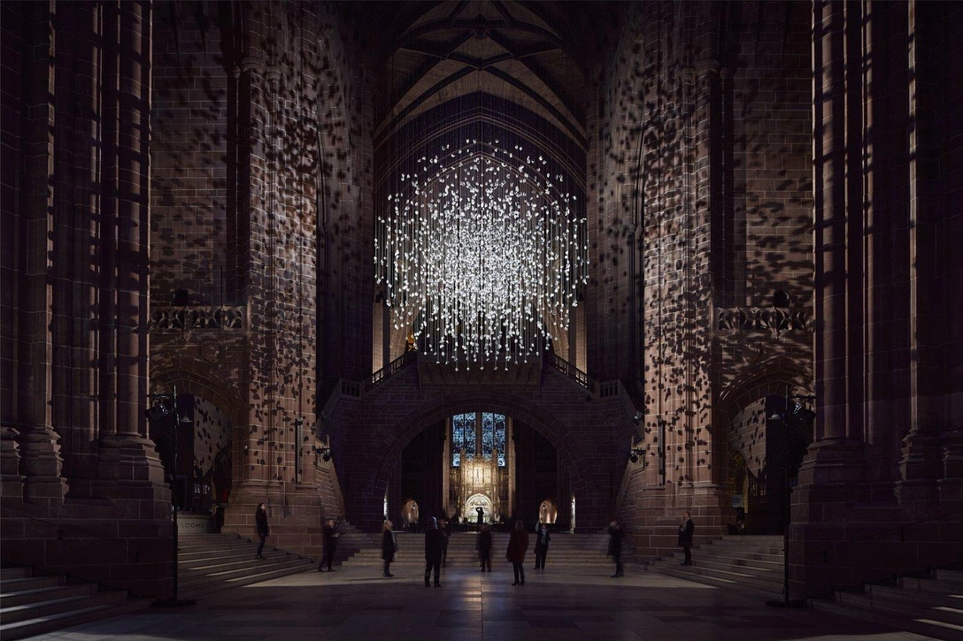 Инсталляция Coalescence была создана в сотрудничестве с Carpenters Workshop Gallery и является частью программы мероприятий, приуроченных к 100-летию Ливерпульского собора, которое выпадает на следующий год.
