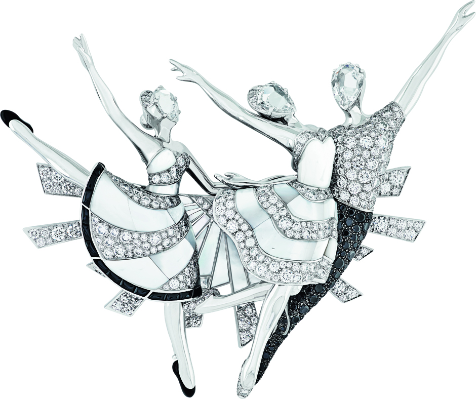 Первые броши в виде балерин были созданы Van Cleef & Arpels еще в начале 1940-х годов. Идею предложил Луи Арпельс, страстный поклонник оперы и балета. С его легкой руки изящные фигурки балерин из золота и драгоценных камней сразу же стали символом ювелирного Дома.
