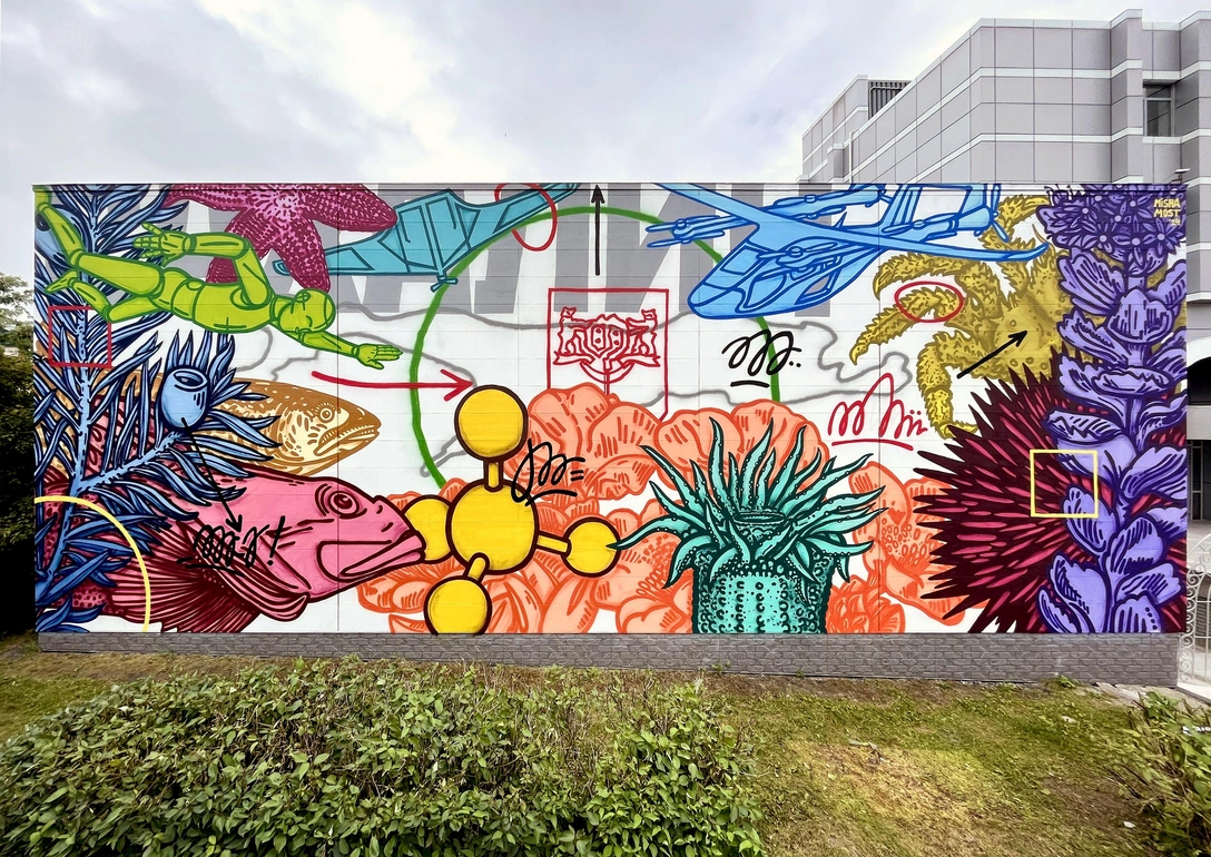 Художник, куратор, участник Московской международной биеннале современного искусства и Московской международной биеннале молодого искусства Миша Most создал на фасаде здания в Южно-Сахалинске арт-объект площадью более 140 м2. В работе ему помогали художники-коптеры. Проект был реализован в рамках проектно-образовательного интенсива «Архипелаг 2024» при поддержке университета креативных индустрий Universal University и Автономной некоммерческой организации «Университет 2035».