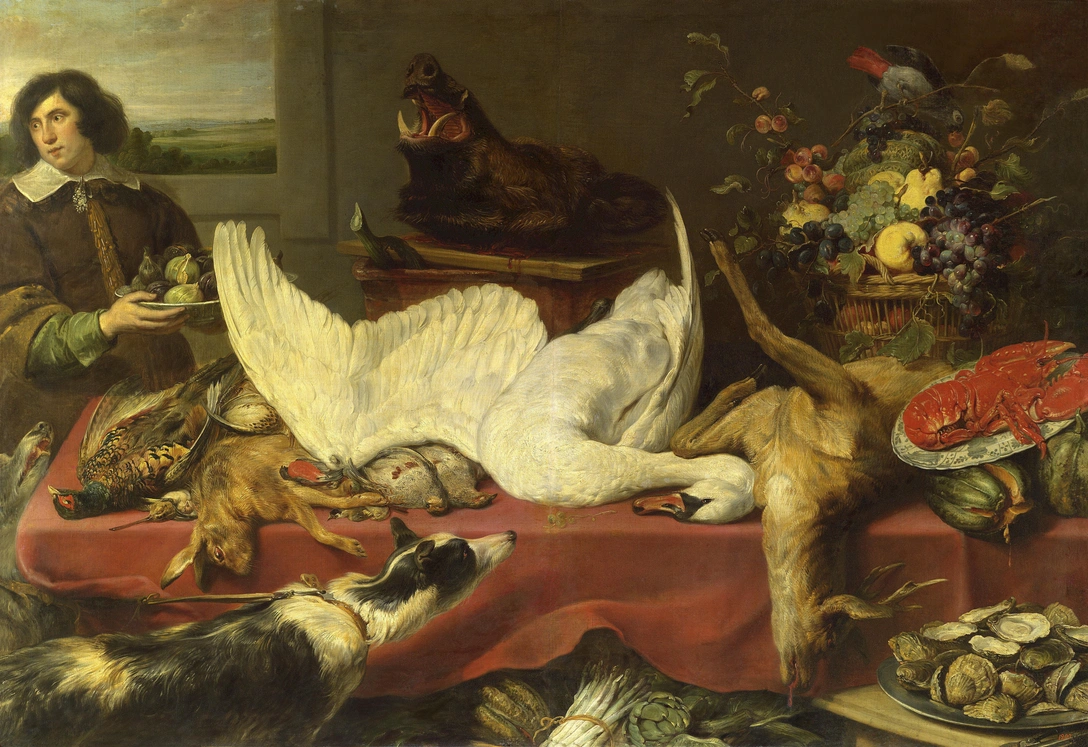 Франс Снейдерс — один из главных представителей жанра в то время. Он известен своим мастерством в передаче материального мира: в изображении охотничьих трофеев, разнообразной дичи, кухонь, рынков и торговых лавок.