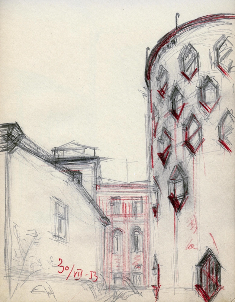 Игорь Пальмин. Дом Мельникова. Фрагмент южного фасада. Из собрания Музея архитектуры им. А. В. Щусева.
