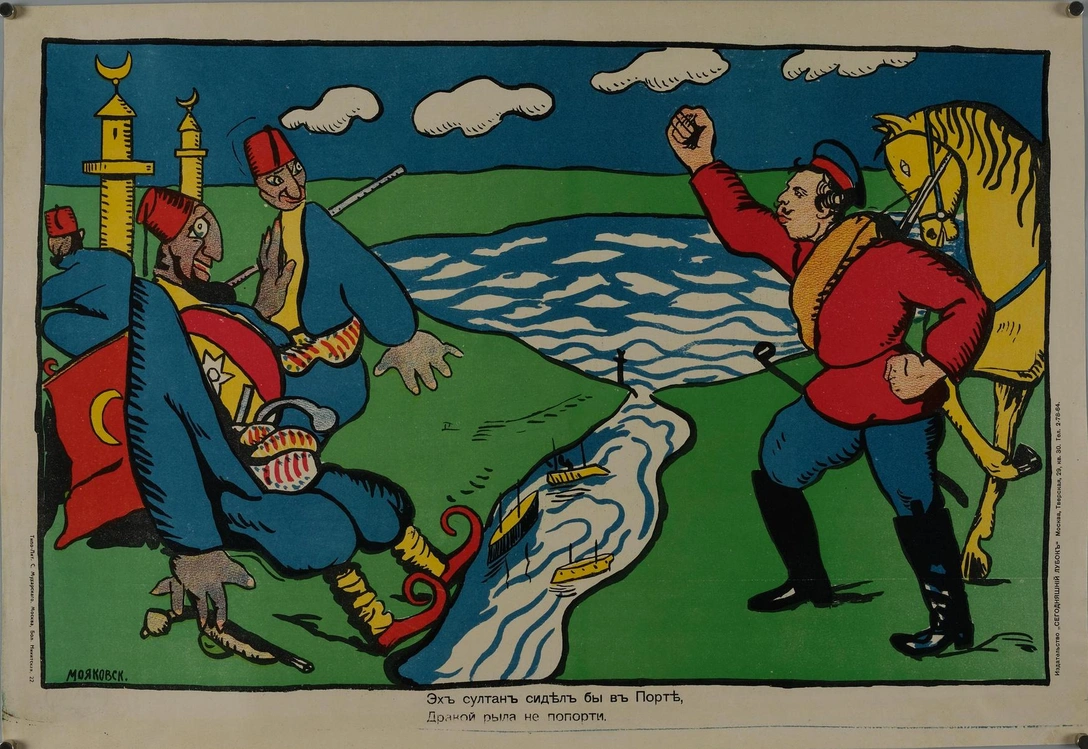 Доступные для понимания самой широкой аудитории, эти работы высмеивали врагов Российской империи, славили достоинства русской армии и поднимали боевой дух. Маяковский выступал и как автор текстов, и как художник. Созданные им лубочные плакаты «Эй, султан, сидел бы в Порте», «Австрияки у Карпат поднимали благой мат», «Эх, ты, немец, при, да при же» стали важным этапом его работы для дальнейшего становления одним из главных рекламистов ХХ века.
