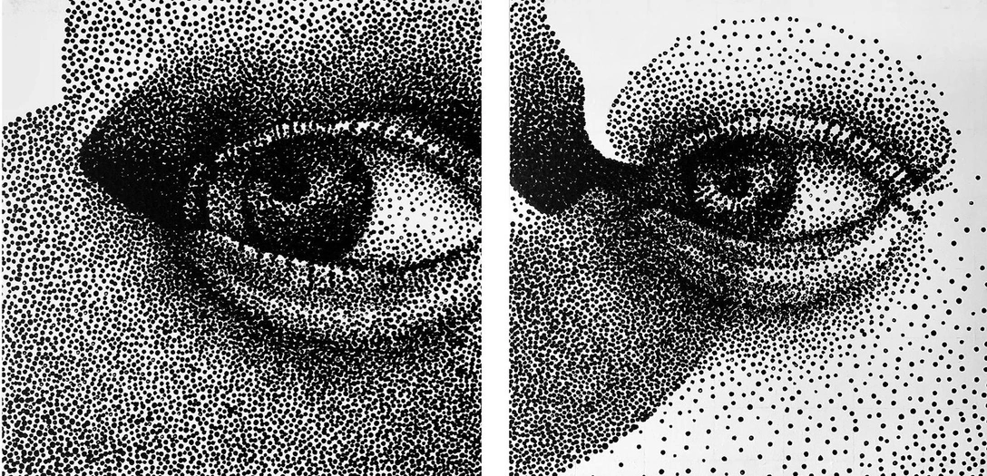 Отдельное место в экспозиции занимают работы, выполненные в технике дот-арт. Изображения складываются из множества мелких точек, эффект глубины и объема достигается за счет уплотнения массы точек или, наоборот, увеличения пробелов между ними. Персонажами этой серии стали «идеальные женщины», а точнее их тела и черты лица. Среди них угадывается Мона Лиза и героини соцсетей.