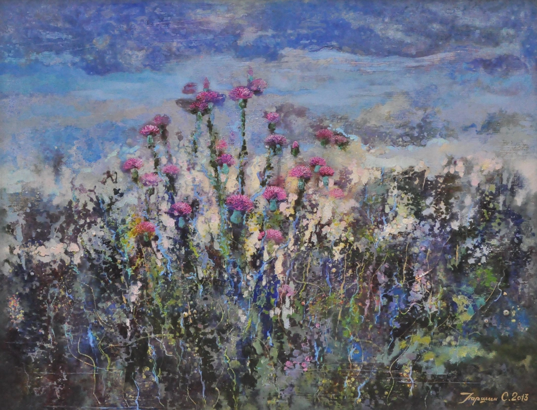 Цветы Сергея Паршина — это кропотливое вглядывание в некий «сюрреальный» мир, создаваемый над миром реальным, где из глубин и мощи соцветий, из подвижной структуры покрытых цветами лугов и полей, ощущается внутренняя музыка, гармония образа, и возможность начала некой истории.