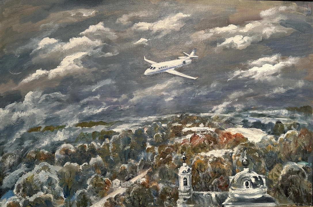 Ольга Кротова-Сверчкова живет неподалеку от аэропорта Остафьево. Во время пандемии коронавируса у художницы возник замысел цикла картин, пронизанных темой полета. Парящие самолеты — характерный образ для периода самоизоляции, когда нам всем хотелось улететь за пределы своего дома. Они олицетворяют свободу и полет творческой фантазии.