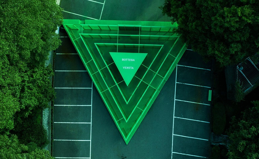 На автомобильной парковке в Сеуле этой осенью появился необычный арт-объект. Он представляет собой временную постройку в форме треугольника полностью зеленого цвета и является творением марки Bottega Veneta.