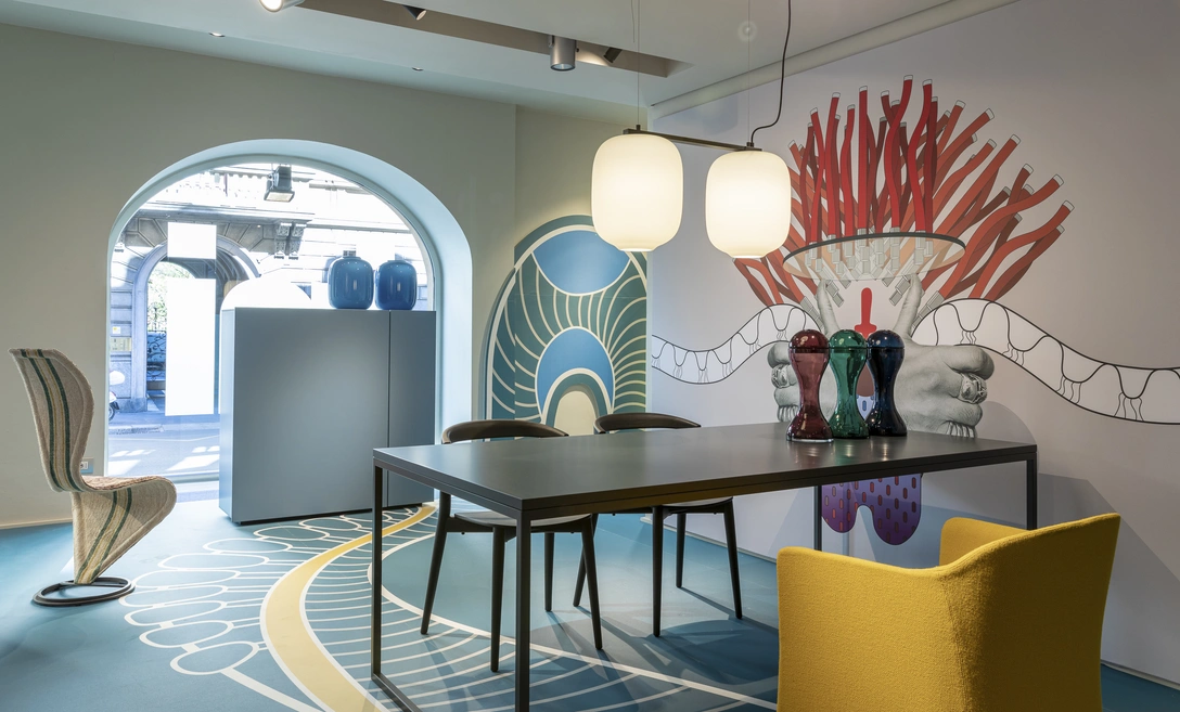 На время Миланской недели дизайна, которая проходит сейчас в Италии, шоурум Cappellini на Via Santa Cecilia преобразился, превратившись в мир ярких образов и красок. Новые объекты по дизайну Джаспера Моррисона (Jasper Morrison), Кирилла Дундеры и Матея Янского (Cyril Dunděra & Matěj Janský), Франческо Форчеллини (Francesco Forcellini) и Джулио Каппеллини (Giulio Cappellini) вступают в художественный диалог с иконами бренда в необычных декорациях, созданных дизайнером и художником Еленой Сальмистраро (Elena Salmistraro).