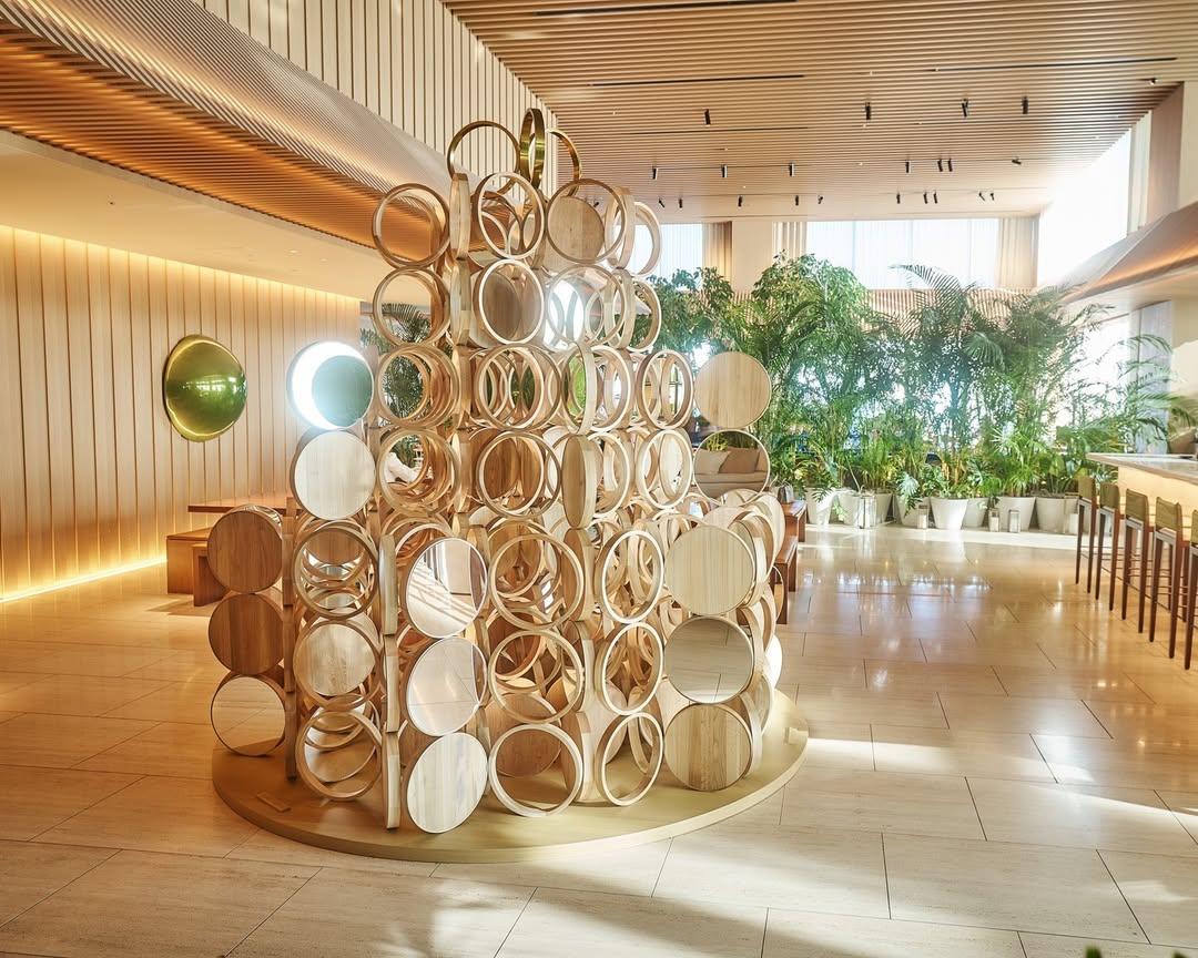 Оба рождественских дерева сделаны из любимого материала архитектора — натурального дерева. По завершению рождественского сезона они будут разобраны на детали и пущены на производство мебели японским производителем Karimoku.