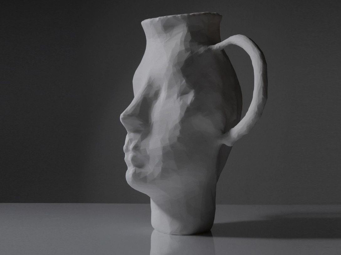 Второй объект — асимметричная ваза с очертаниями человеческого лица. Их нейросеть придумала сама — в акварельном наброске дизайнеров ничего похожего не было. «Как и человеческому разуму, ИИ свойственно видеть антропоморфные черты в разных объектах», — говорит Лагерквист.