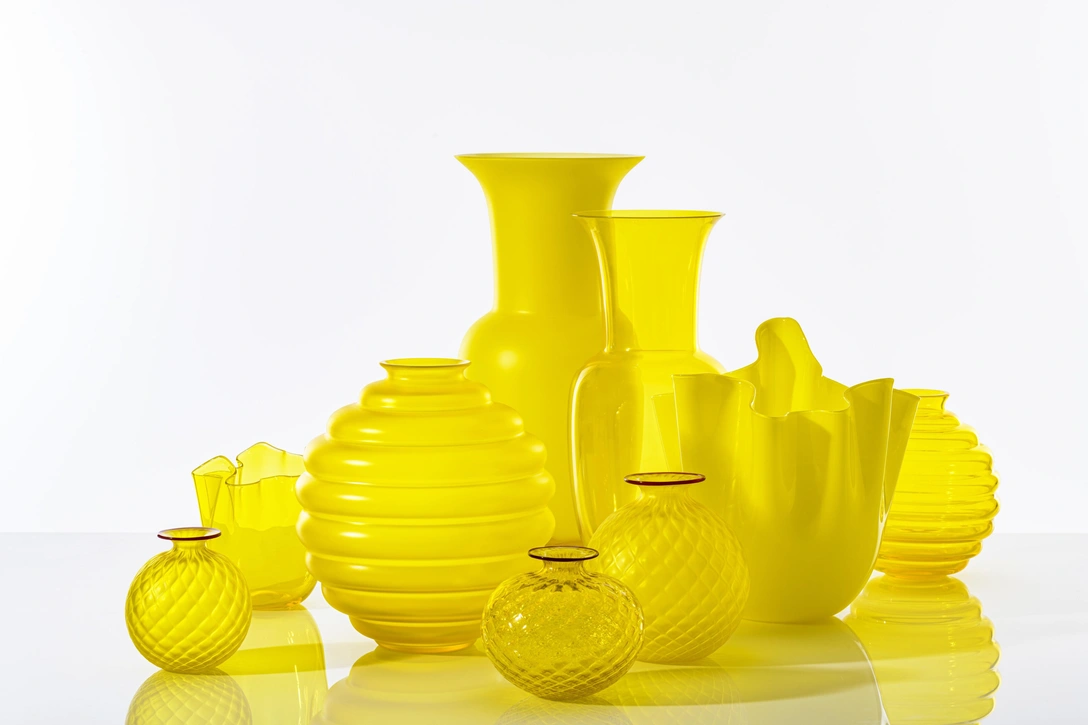 Коллекция Ginkgo Biloba объединяет серию предметов: вазы Fazzoletto, Deco, Monofiore, Balloton, Opalino, Bloom, Ritagli, настольные лампы Balloton Luce, Deco Luce и Fantasmino. И все они выполнены в одном цвете — солнечно-желтом, новом для Venini.