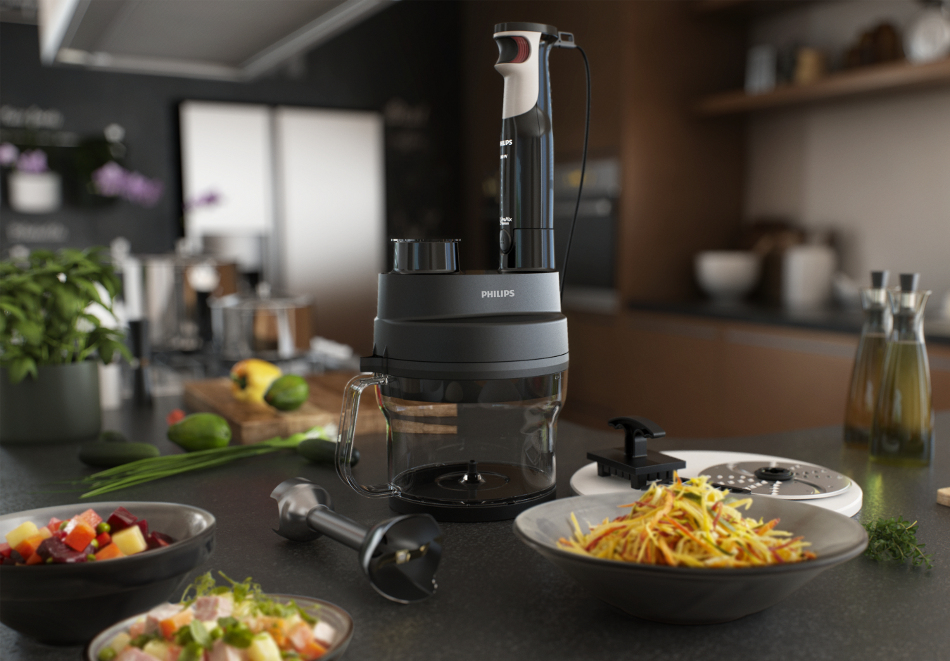 Горячая любовь россиян к оливье, окрошке и винегрету способствовала появлению на свет ручного блендера Philips SpeedTouch HR1679. Прибор разработан специально для российского рынка, с учетом особенностей национальной кухни. Блюдо с ингредиентами в форме аккуратных кубиков и ломтиков, словно нарезанных по линейке поваром-перфекционистом, впечатлит даже искушенного гурмана.