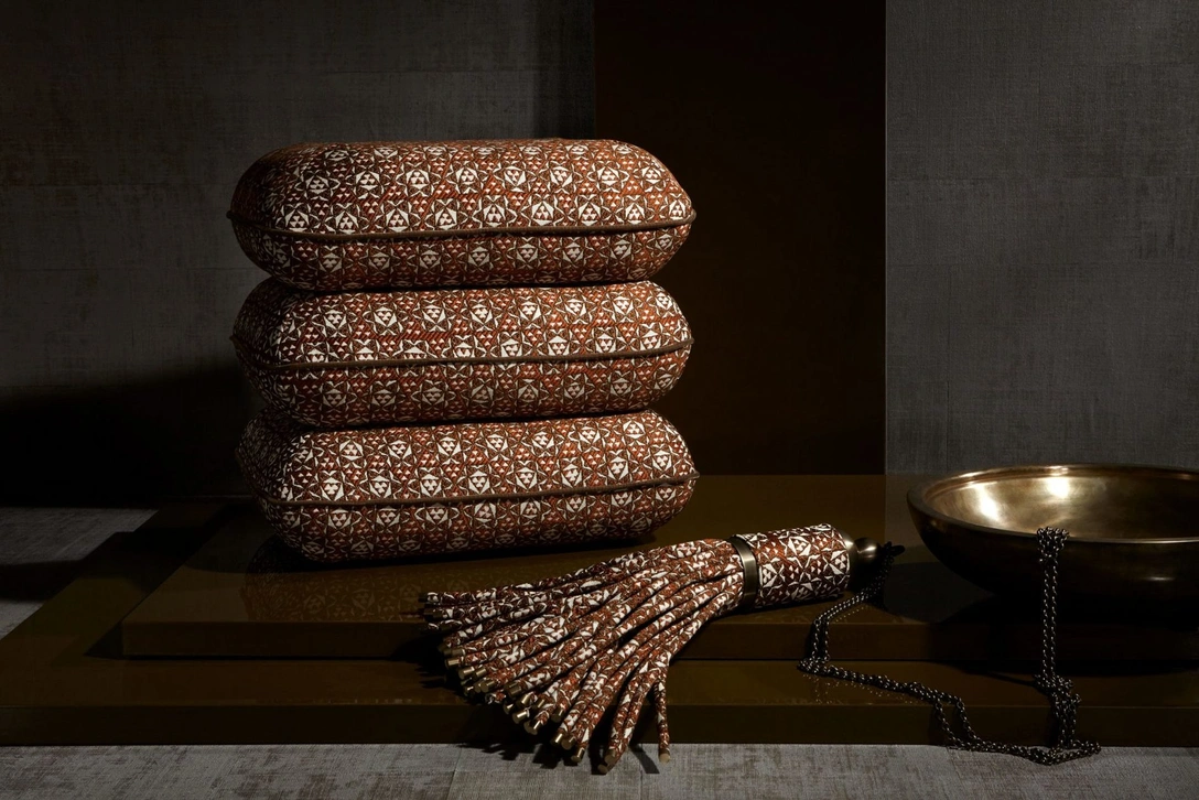 В новой коллекции тканей Isfahan, носящей имя иранского города Исфахан, дизайнеры перенесли затейливую геометрию «хатама» на интерьерный текстиль. Название выбрано не случайно: Исфахан — одно из немногих мест на земле, где древнее искусство инкрустации сохранилось до сих пор.