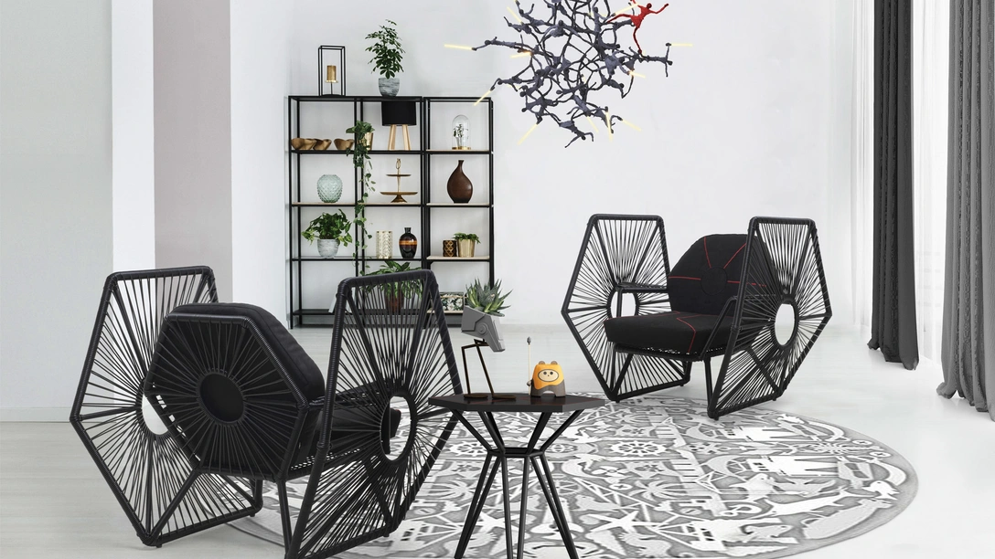 Филиппинский дизайнер Кеннет Кобонпу (Kenneth Cobonpue) и компания Disney, которой принадлежит франшиза на «Звездные войны», объединили свои усилия и выпустили коллекцию мебели, навеянную культовыми персонажами киновселенной. В нее вошли кресла, журнальные столики и светильники, в дизайне которых воплотились образы владыки ситхов, Дарт Вейдера, Чубакки, юного падавана и других легендарных героев эпопеи.