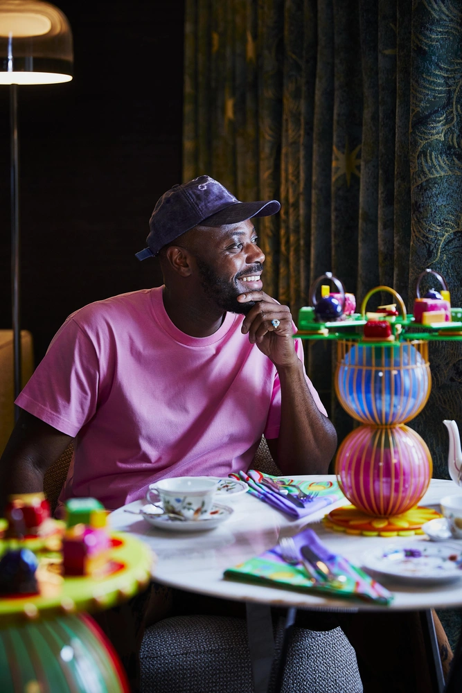 «Я очень рад работать с отелем Bulgari London в честь его знаменательного 10-летия. Мои проекты для этой коллаборации прославляют культурную мозаику Лондона и радость от встречи за трапезой. Подставки для чая навеяны геометрией сферы и встречей разных культур, и я надеюсь, что люди соберутся в отеле и получат удовольствие от яркого красочного угощения во время полуденного чая», — говорит дизайнер.