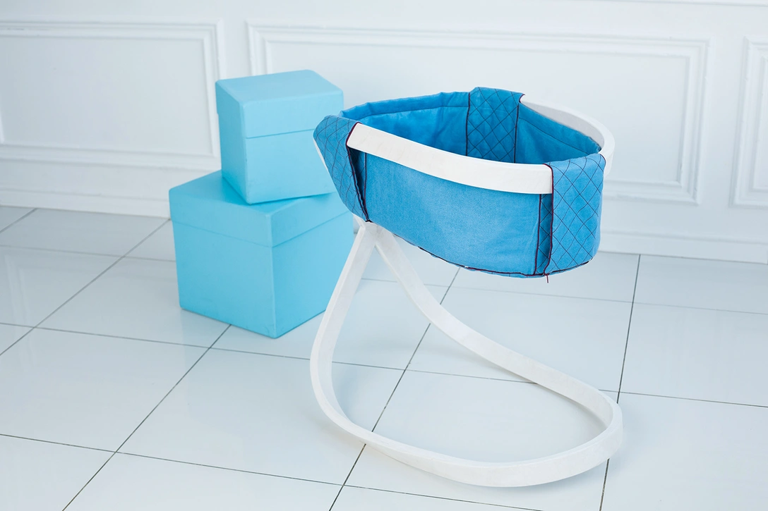 Люлька получилась чрезвычайно легкой, так что объект можно постоянно переносить с места на место, чтобы ребенок всегда оставался в поле зрения родителей. Колыбель рассчитана на малышей до 5-6 месяцев. Однако после достижения этого возраста, предмет можно использовать в качестве детского стульчика. Также основание разбирается на две части для удобства хранения.