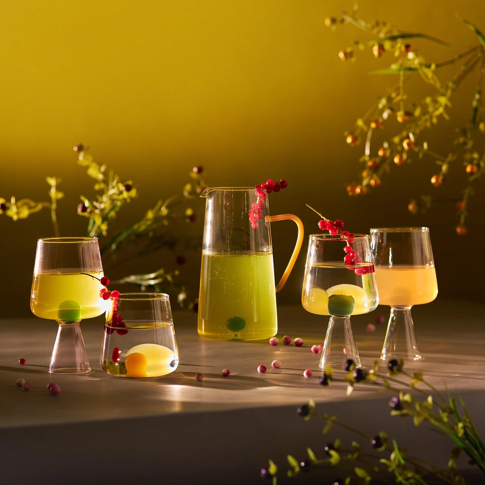 Для любой сервировки, будь то праздничный стол или обычный семейный ужин, требуются бокалы. Мы в myDecor любим необычный дизайн, и рады тому, что оригинальная посуда из стекла есть не только у известных европейских брендов, но и у отечественных производителей. Наглядный пример — коллекция Orb российской марки Liberty Jones. В нее входят кружки и кувшины с ручкой из цветного стекла, стаканы и бокалы необычной формы на толстых конусовидных ножках, за которые их удобно держать в руке. Но главная «изюминка» находится внутри: это небольшой цветной стеклянный шарик на дне. Особенно эффектно эта маленькая деталь выглядит, когда в посуду налиты напитки.