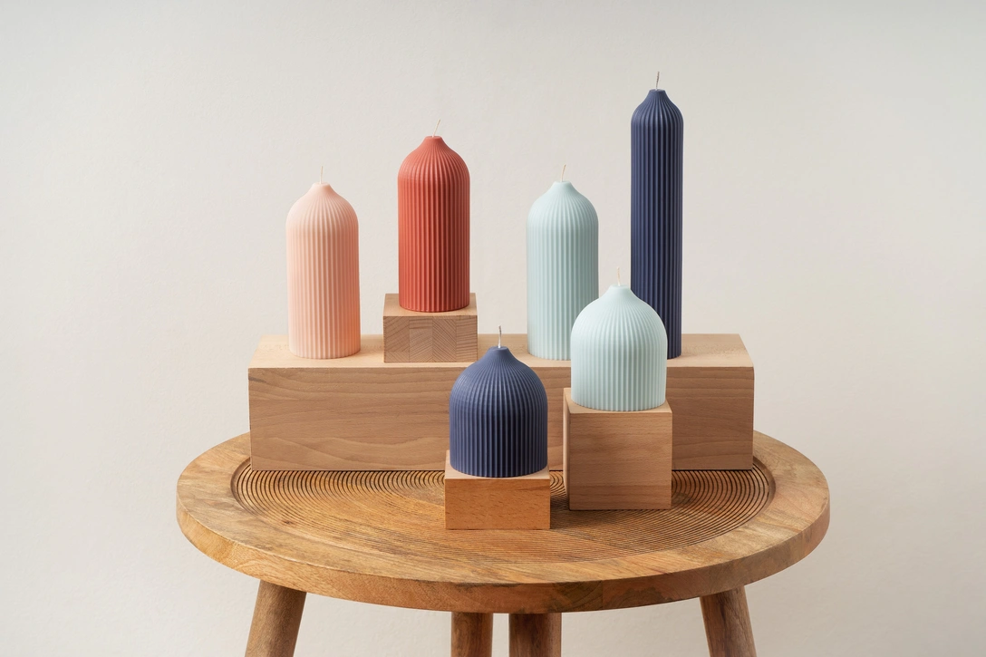 Первой «ласточкой» стали интерьерные свечи. Они не имеют запаха и 100% экологичны. Свечи изготавливаются вручную из натурального воска и парафина, а фитиль в них сделан из хлопка. Благодаря такому составу они горят долго и без копоти, создают уютную обстановку в комнате, а также прекрасно подходят для сервировки стола.