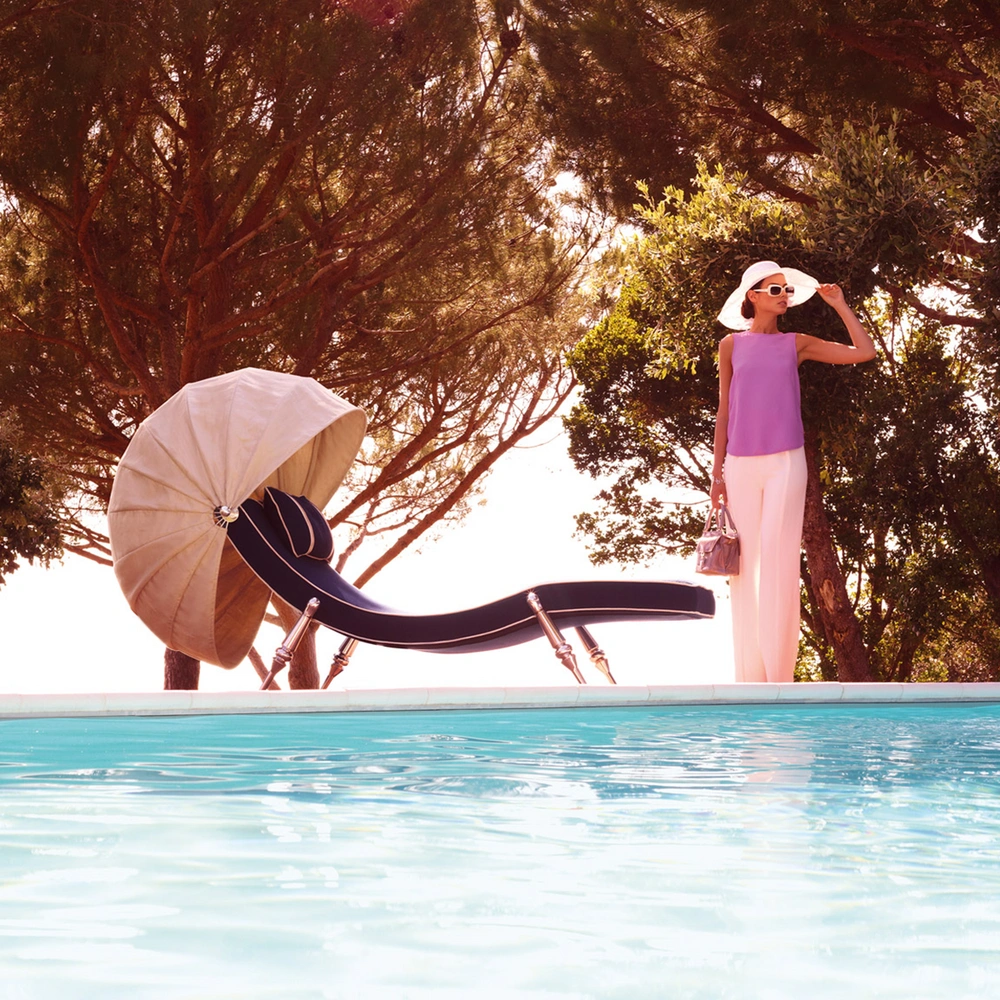 Вторая работа Джузеппе для Visionnaire называется Svevа и представляет собой изящный уличный шезлонг. Его дизайн навеян современными архитектурными проектами — бетон, большие окна, много зелени... «В это современное архитектурное пространство мне хотелось поместить максимально эмоциональный объект, вдохновленный миром моды», — комментирует свою работу дизайнер. Как и в случае с Kathryn, форма шезлонга непосредственно связана с природой и напоминает морскую волну.