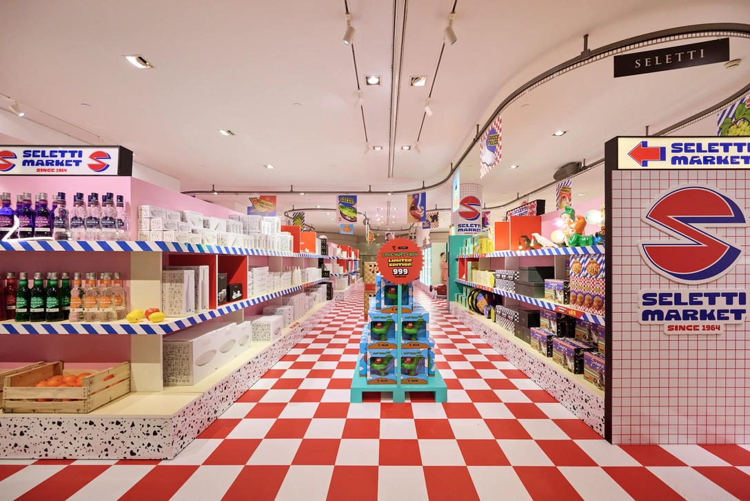 «Первый итальянский супермаркет открылся в Милане в 1957 году, а через несколько лет мой отец Романо основал Seletti, — говорит Стефано Селетти (Stefano Seletti), арт-директор бренда. — Когда Rinascente предложила нам центральную часть своего цокольного этажа в магазине на Piazza Duomo, я сразу подумал о пространстве, которое могло бы обыграть эстетику 1960-х. Seletti Market — это веселый способ по-новому переосмыслить классические элементы культуры общества потребления, в котором мы выросли».