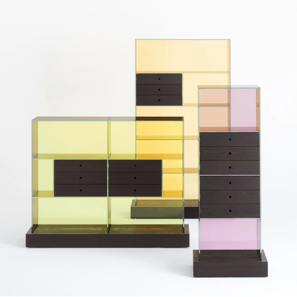 Во время выставки Salone del Mobile.Milano 2022 марка Glas Italia показала новую серию комодов со стенками и полками из цветного многослойного стекла. Основание и выдвижными ящики мебели сделаны из затемненного ясеня. Их минималистичная форма и игра прозрачного стекла с «плотным» деревом спроектированы итальянским дизайнером Пьеро Лиссони (Piero Lissoni), давно работающим с компанией.