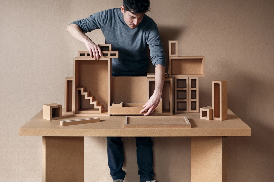 Мы стремились упростить и стандартизировать технологии изготовления, покраски, склейки и минимизировать отходы. Выстраивали процесс так, чтобы на момент готовности крупноформатных объектов, таких как стеллажи и столы, мы уже знали, куда применить оставшиеся фрагменты.